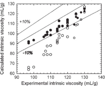 含淀粉产品的挤压过程很复杂,这一过程取决于微观结构的演变(颗粒结构的丧失、直链淀粉和支链淀粉链的降解等)。为了预测淀粉的转变,对比机械(SME)对材料特性粘度的影响进行了分析。实际上,粘度和比机械能可认为是淀粉反应的判别参数。 在考虑耦合和不考虑耦合的情况下,采用Ludovic分别进行了比机械能和粘度的计算。通过实验结果的对比,显示出良好的匹配性(见下图)。将比机械能和粘度进行耦合可以进行定性分析,从而预测含注粉产品反应的演变情况。