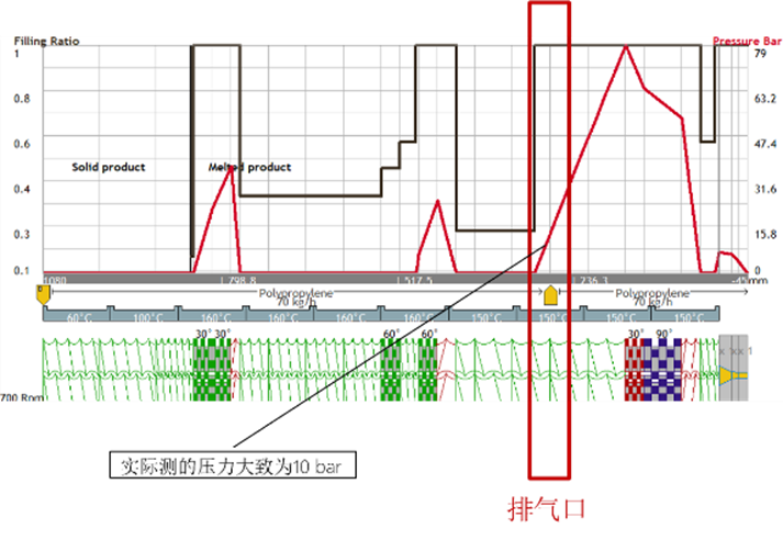 Ludovic软件识别 采用Ludovic 软件对该挤出过程进行模拟,进而识别“冒料”问题,得到如下结果: