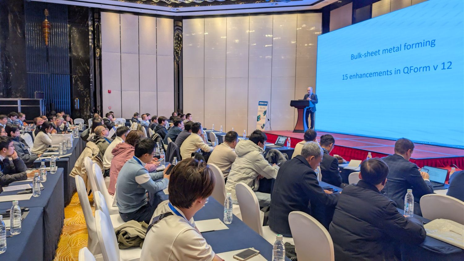 QForm在中国市场的发展,QForm中国-北京创联智软科技有限公司副总经理刘寒龙 QForm中国北京创联智软科技有限公司的副总经理刘寒龙做了主题报告-QForm在中国市场的发展,回顾了QForm进入中国的历程及市场发展情况,以及在本地化方面的工作(包括中文书籍、软件界面翻译、组织中国大学生参加QForm奥林匹克竞赛等)。 三个分会场,一个共同目标 11月27日,为各专题分会场报告: 1 – 锻造分会场:锻造设计、结构分析、板料成形, 2 – 轧制分会场:纵向轧制、环轧、横向轧制 3 – 挤压分会场:挤压设计、热处理、模具寿命、型材质量。 QForm Forum China 2025汇集了专家、研究人员和学生,共同探索金属成形的未来。从人工智能和API创新到真正的利益,论坛展示了合作、教育和技术如何推动行业向前发展。金属成形的未来是数字化、智能化和共享的,QForm正在引领这一趋势。 参会者合影 |